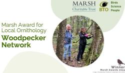 Woodpecker Network was honoured to accept the 2024 Marsh Award for Local Ornithology at the BTO Awards Evening hosted by the Society of Wildlife Artists at the Natural Eye Exhibition at the Mall Gallery in October 2024.